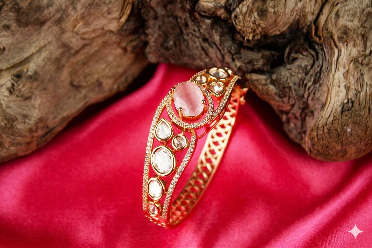 Elegant Ruby Red & Moissanite Gold-Plated Kada Bangle