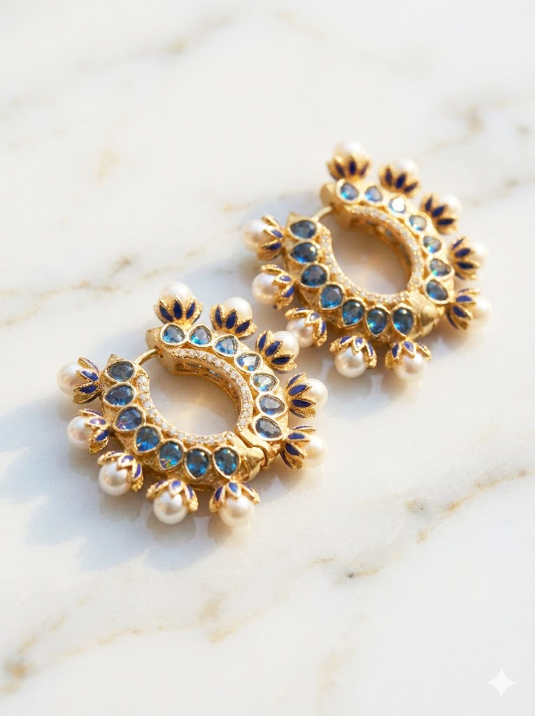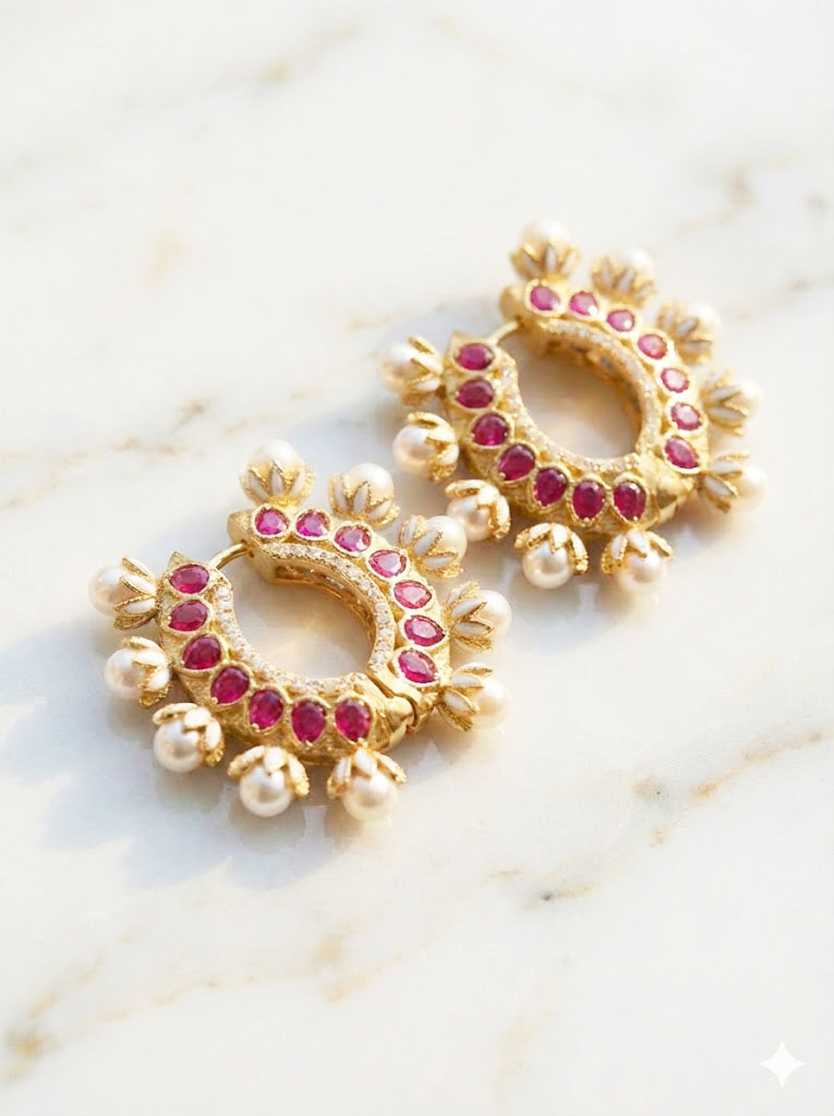 Be the first to review “Regal Pearl & Moissanite Polki Chand Bali Hoop Earrings”