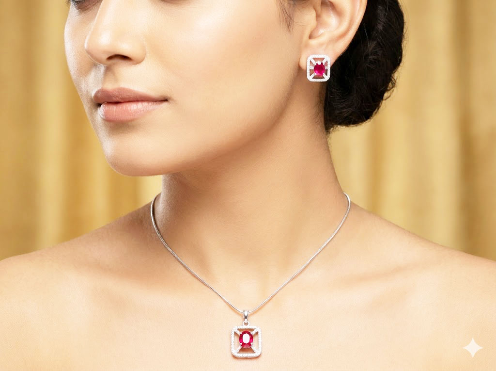 Set Includes: 1 Pendant with Chain, 1 Pair of Stud Earrings