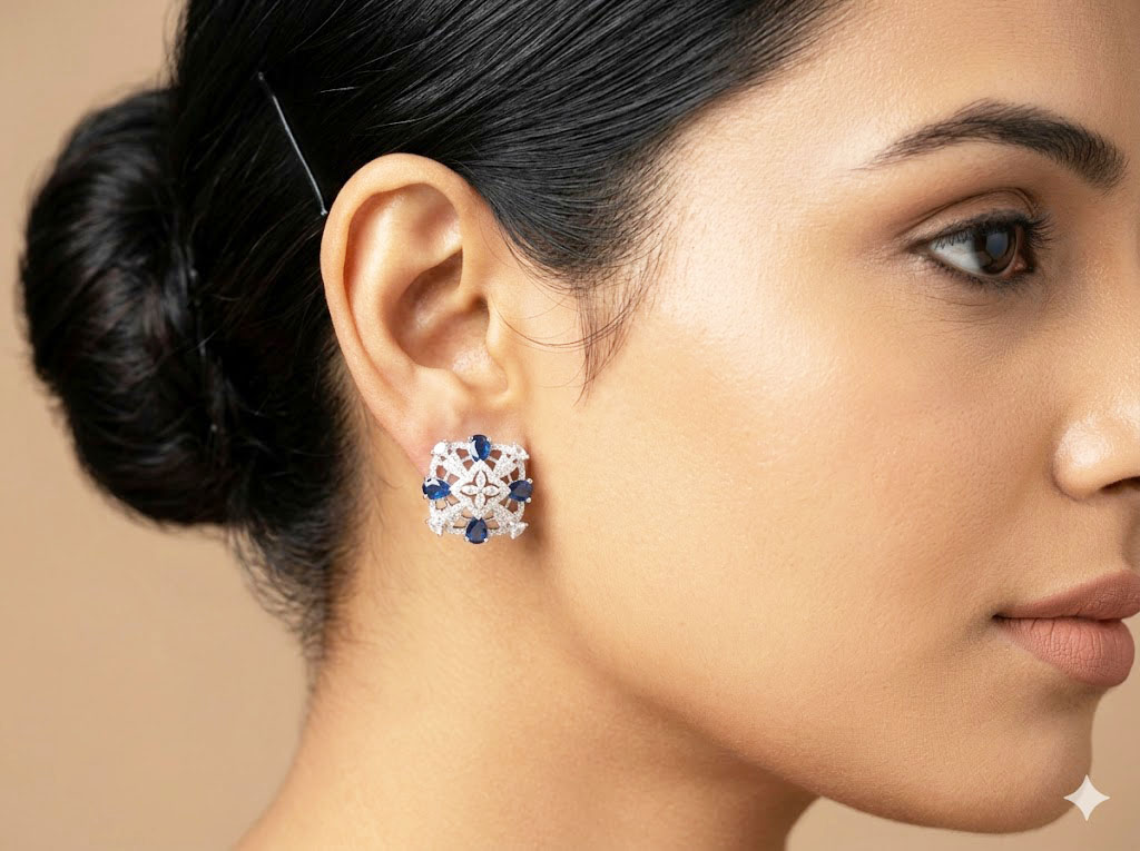 | Elevate your elegant evening wear with these exquisite silver-tone cluster stud earrings. Designed to catch the light from every angle, these statement pieces feature a brilliant central square-cut stone surrounded by an intricate, floral-inspired arrangement. The design masterfully incorporates a mix of pear-cut, baguette-cut, and micro-pavé round stones, creating a luxurious and dimensional sparkle. Perfect for weddings, galas, or adding a touch of glamour to your special occasion attire. |